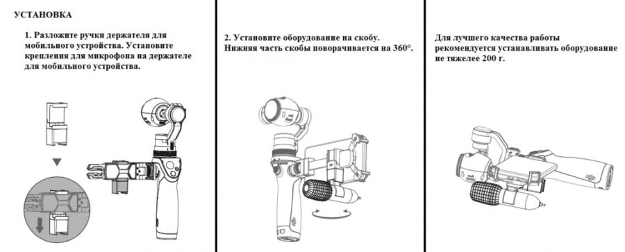 Съемное крепление используется для быстрой и простой установки микрофона на DJI OSMO. Крепление можно установить на держатель для мобильного устройства.
