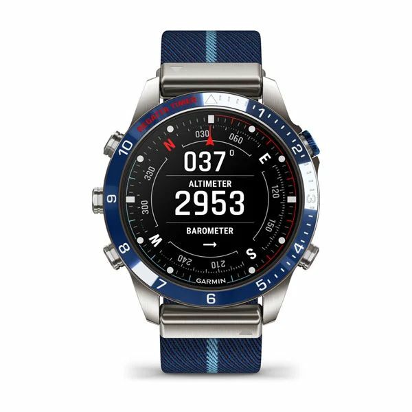 Эти современные часы-инструмент класса люкс, созданные специально для жизни на море, включают полосатый нейлоновый ремешок в технике жаккардового плетения, великолепный сенсорный дисплей AMOLED, управление с помощью традиционных кнопок и корпус 46 мм из титана Класса 5. Использование высококлассных материалов обеспечивает повышенную прочность.